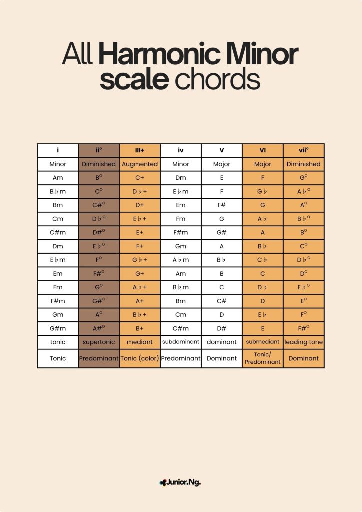 All Harmonic Minor scale chords chart