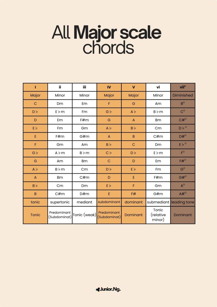 All Major scale chords chart