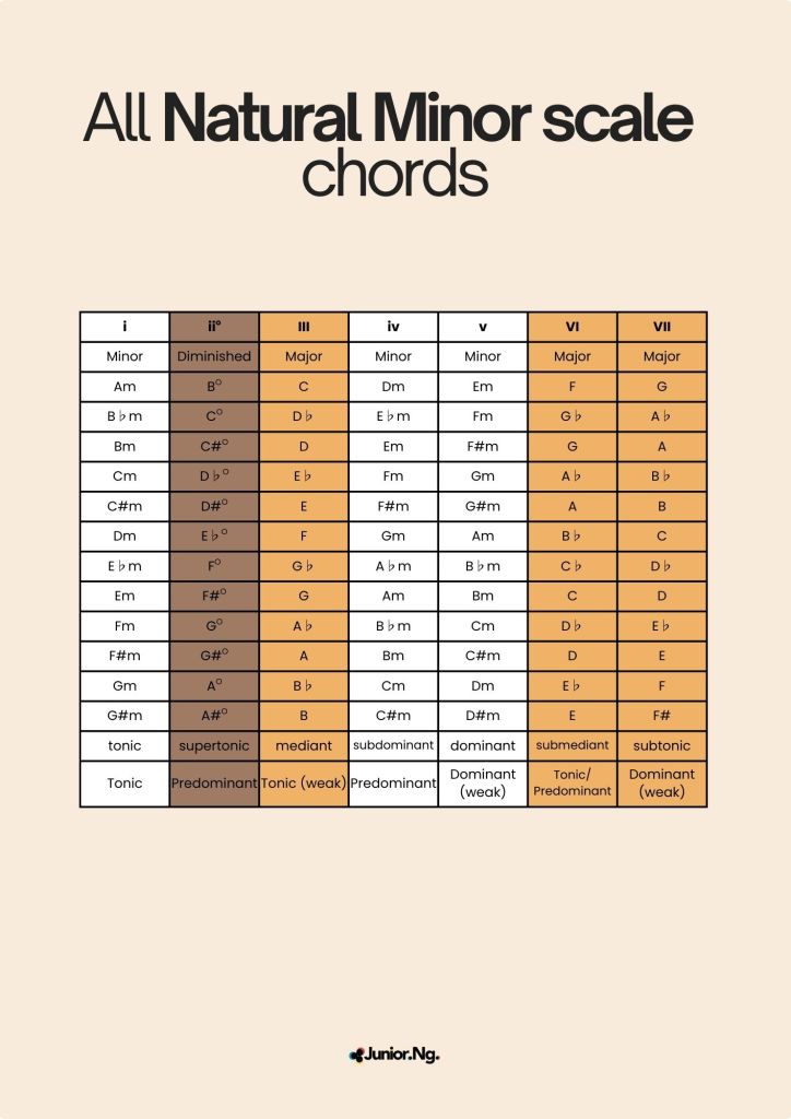 All Natural Minor scale chords chart